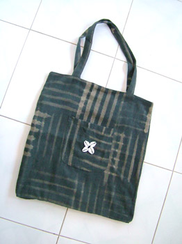 洗いざらしのような生地に筆で書いたような格子の模様。