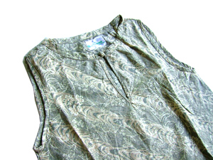 腕周りも開きすぎることなく、前かがみになった時に 気にしなくてもよいところがうれしい♪ 首元も大きく開いたタイプではないので、 胸元が見えることなく気にしなくていいね。 その分、1ボタン留めの下には 女性らしい胸元を演出できるホール♪ ここから涼しさや見た目にも涼しげさを 表現し、アクセントになっています。 裾に行くにつれ広がるAラインタイプで女性らしく♪