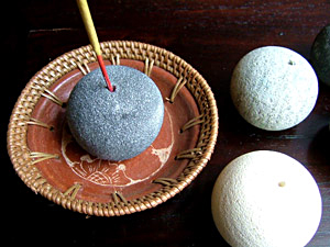 Topインセンス>ロンボク焼皿とセットのまるまるストーンのインセンススタンド