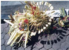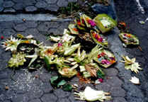 バリ島の道を歩くと必ず出会うお供え物(チャナン)。バリ島特有のお供え物です。