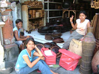 衣類を扱っているお店に水がひざまで高いところに積み重ねた商品はどうにか助かったけど、下に置いた商品はだめだなこりゃ。「手伝おうか?」というと「大丈夫だから」という。隣のお店はレザー屋さんだ。ここも水びだし、その隣の木彫り屋も水が入ったらしいよ。レザー製品も衣類も木彫りも相当なロスがでちゃったな・・・。 |
