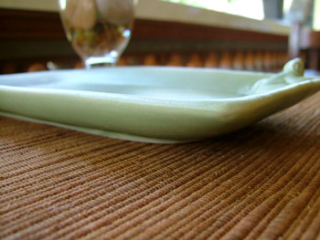 Top>タバナン焼>バリ陶器 カエル付きの四角平皿 艶ナシ